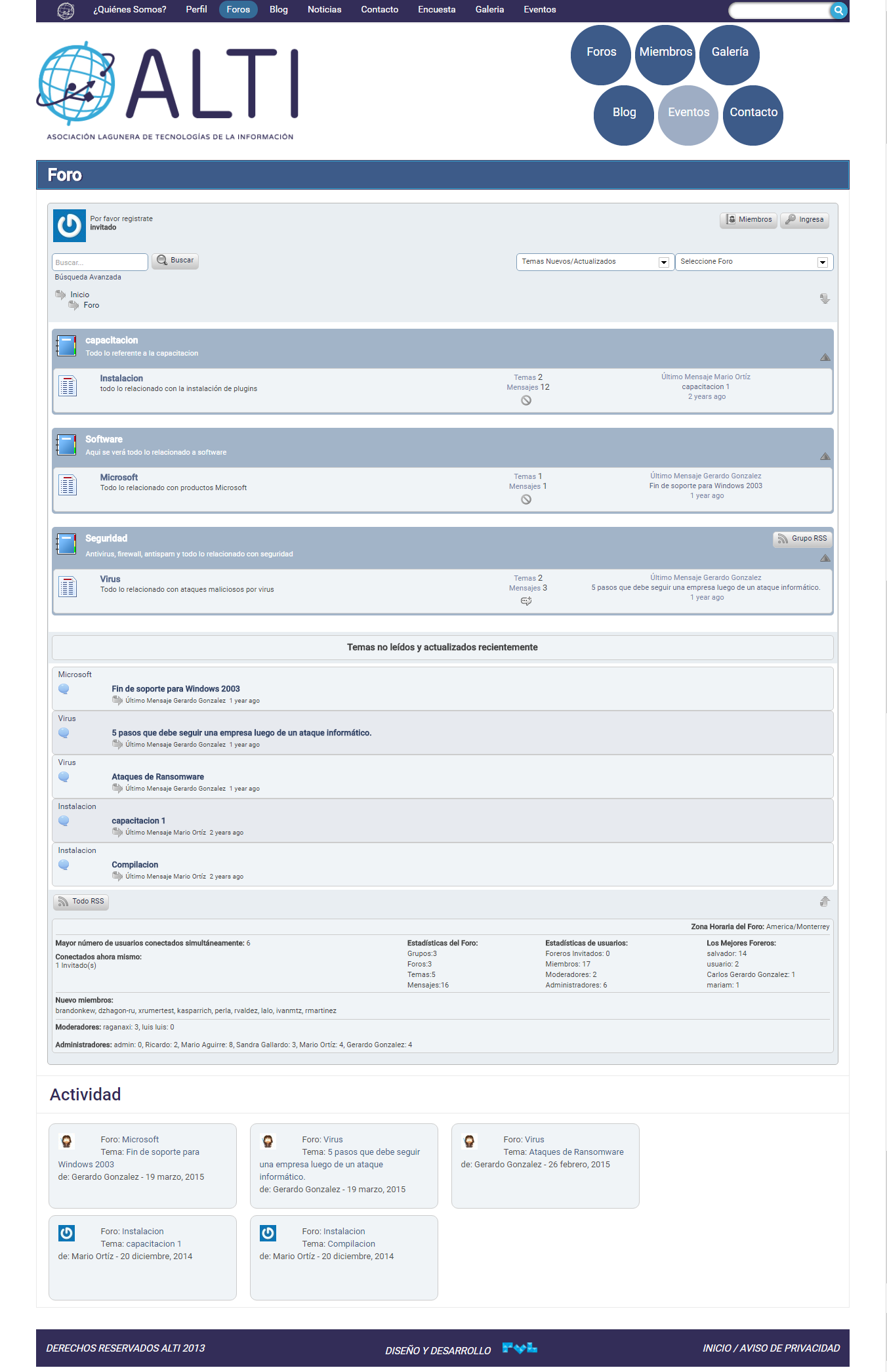 Se elaboró un sitio que incluye registro de participantes con un foro de discusión, así como un apartado de noticias, blog y galería.