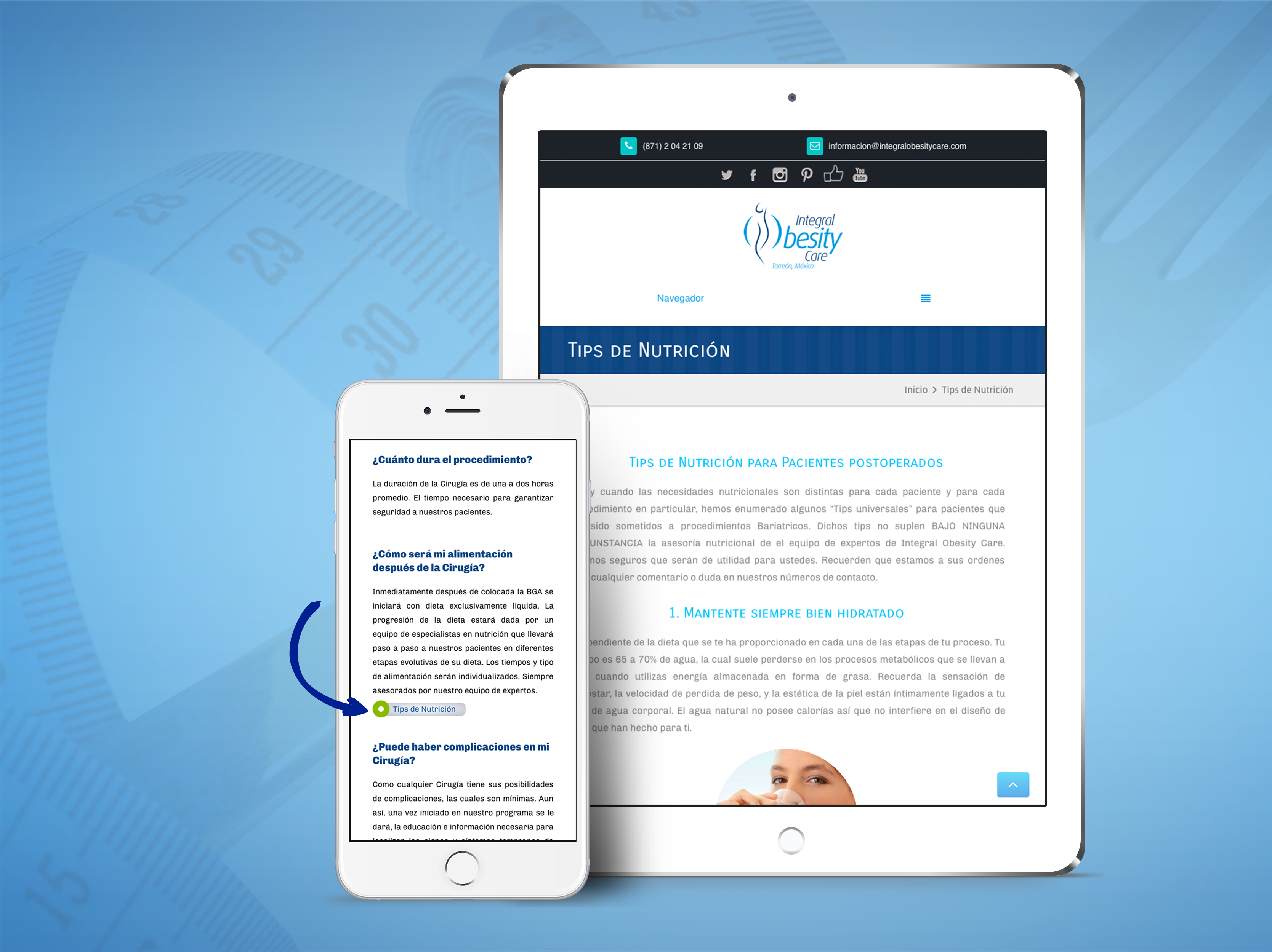 La página, está diseñada para mantener el contacto con el paciente en cualquiera de sus facetas, documentación, operación, post-operación y testimonios. Mediante secciones como tips, preguntas frecuentes, videos ilustrativos y testimonios de pacientes reales.
